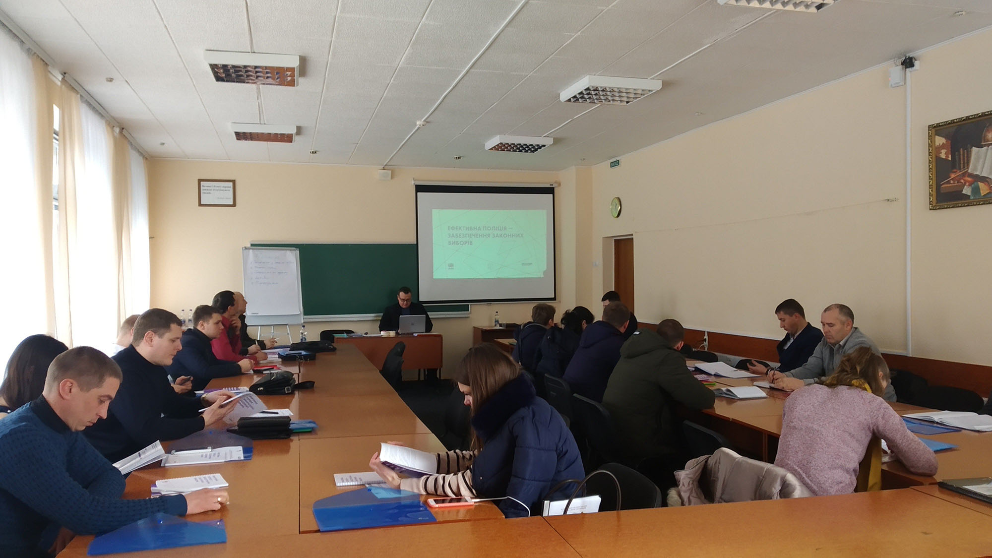 Поліцейських Чернігівської області навчали керівник проекту ОПОРИ Андрій Токарський та завідувач кафедри кримінально-правових дисциплін Львівського державного університету внутрішніх справ Василь Луцик. Протягом дня тренери разом з учасниками згадали про основні положення виборчого циклу, відпрацювали у міні-групах алгоритми дій поліції у разі адміністративних та кримінальних правопорушень під час виборчого процесу.