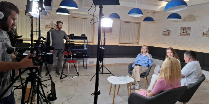 ФОТО Під час знімання програми "Що відбувається?". Фото: Медіабаза Чернігів