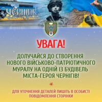 - 6 грудня в Україні відзначатиметься 31-ша річниця з Дня створення Збройних Сил України! Тож з нагоди цієї важливої та символічної дати керівництво Чернігівського обласного ТЦК та СП вирішило створити новий військово-патріотичний мурал на одній з будівель міста-героя Чернігів. Саме тому нам необхідна допомога патріотично налаштованих громадян та справжніх професіоналів своєї справи, - йдеться у повідомленні.