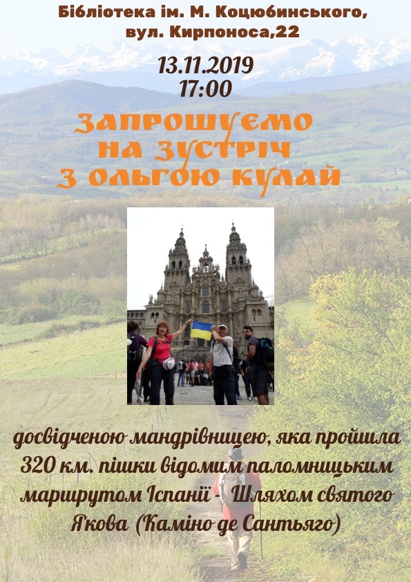 Запрошуємо на зустріч із мандрівницею Ольгою Кулай 13 листопада о 17.00 в бібліотеці ім. М. Коцюбинського