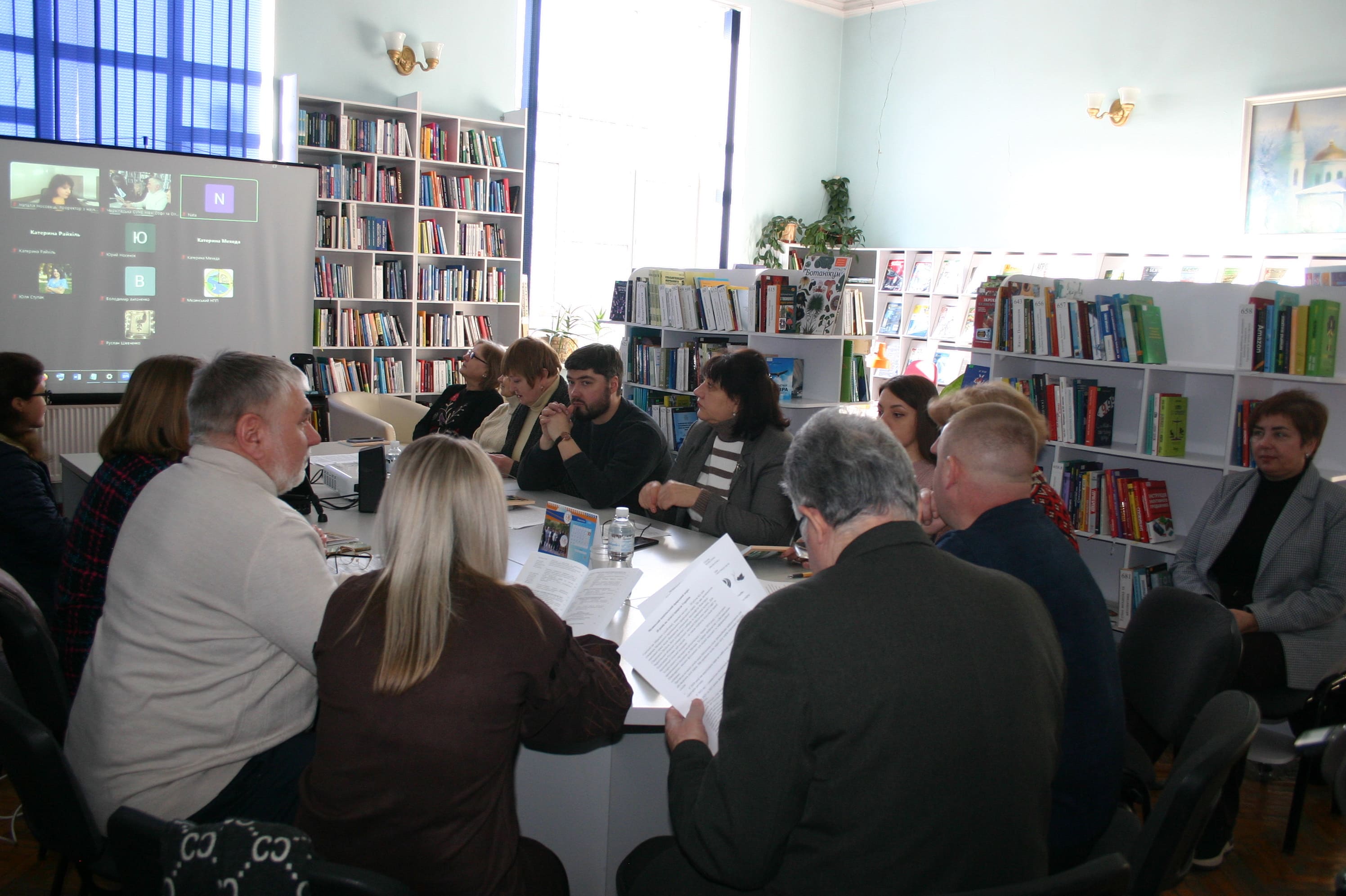Окремим акцентом зустрічі стала презентація книжкової експозиції «Симфонія Мезинського парку: два десятиліття звучання», яку представила модераторка заходу Наталя Карбовська.