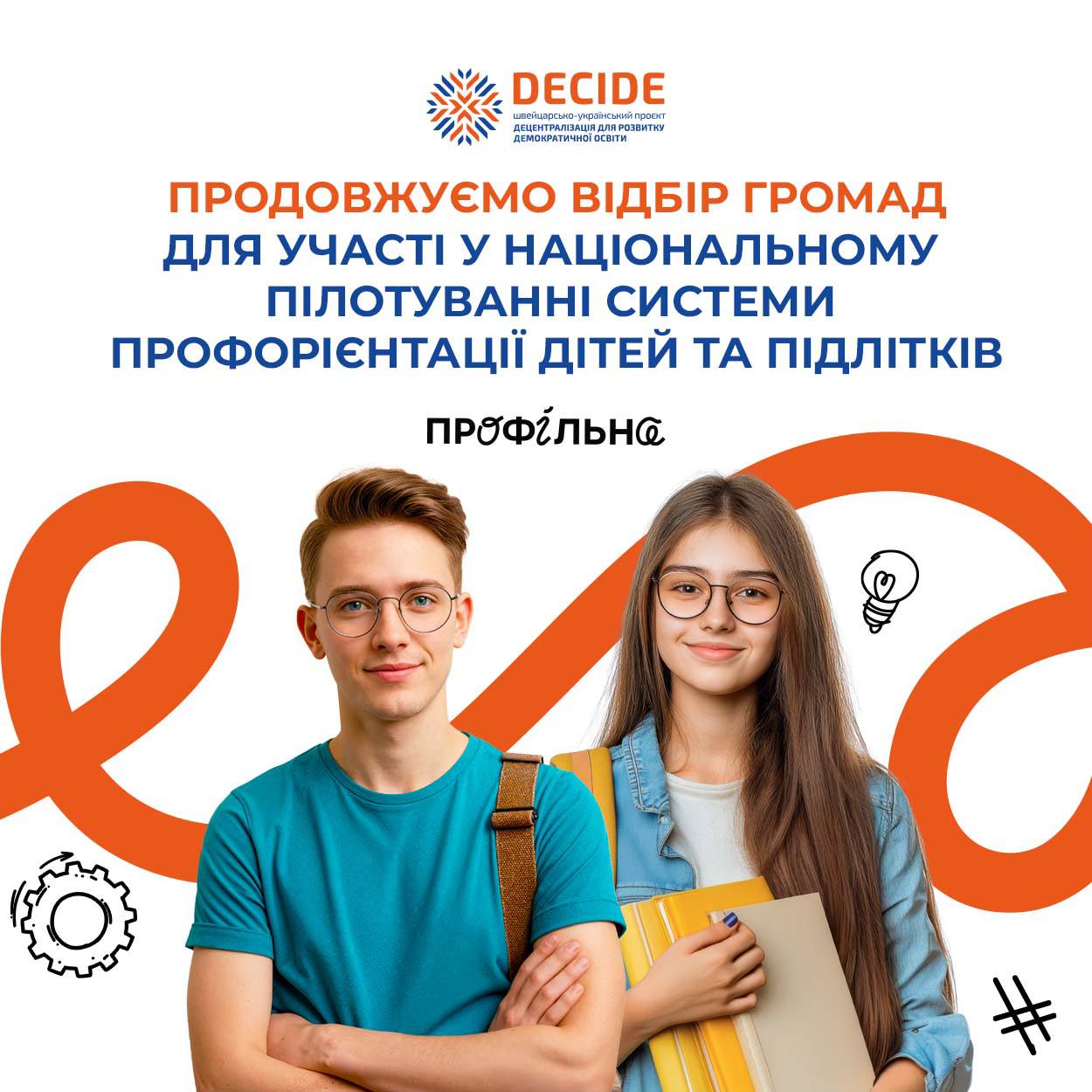 Швейцарсько-український проєкт DECIDE спільно з Міністерством освіти і науки України запрошує територіальні громади долучитися до створення сучасної системи профорієнтації для учнів та учениць 8–9 класів.