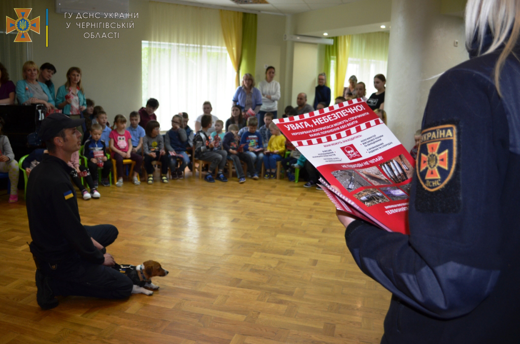 На початку заходу діткам показали відеоролик, в якому талісман чернігівських саперів допомагає їм розміновувати звільнені від російських військ території Чернігівщини. Хлопчики й дівчатка разом із чотирилапим улюбленцем вивчали, як себе поводити якщо натрапили на вибухонебезпечний або підозрілий предмет та, за якими номерами необхідно телефонувати у разі його виявлення. Під час спілкування фахівці ДСНС вручили всім присутнім пам`ятки із заходами мінної безпеки та пригостили солодощами.