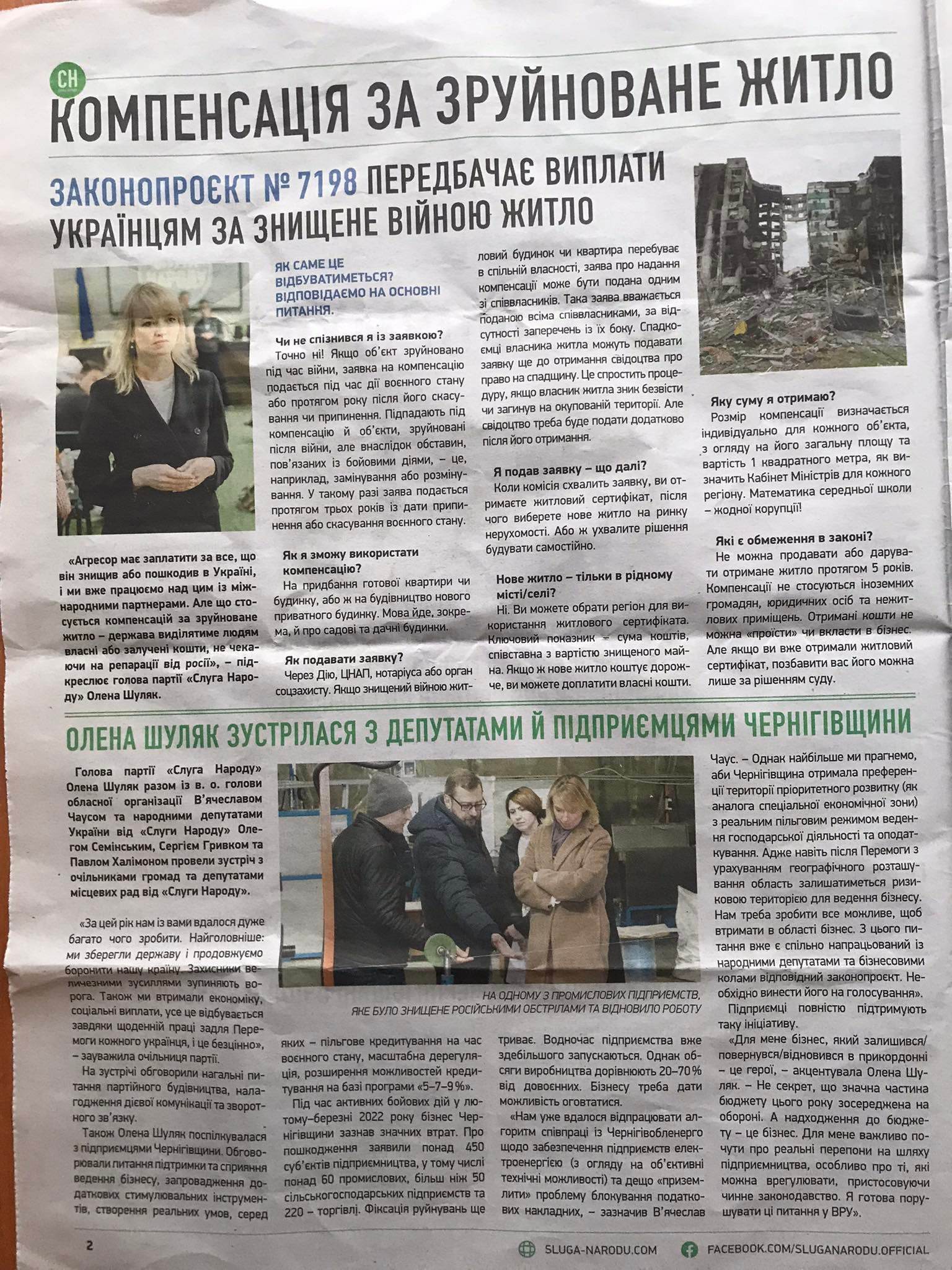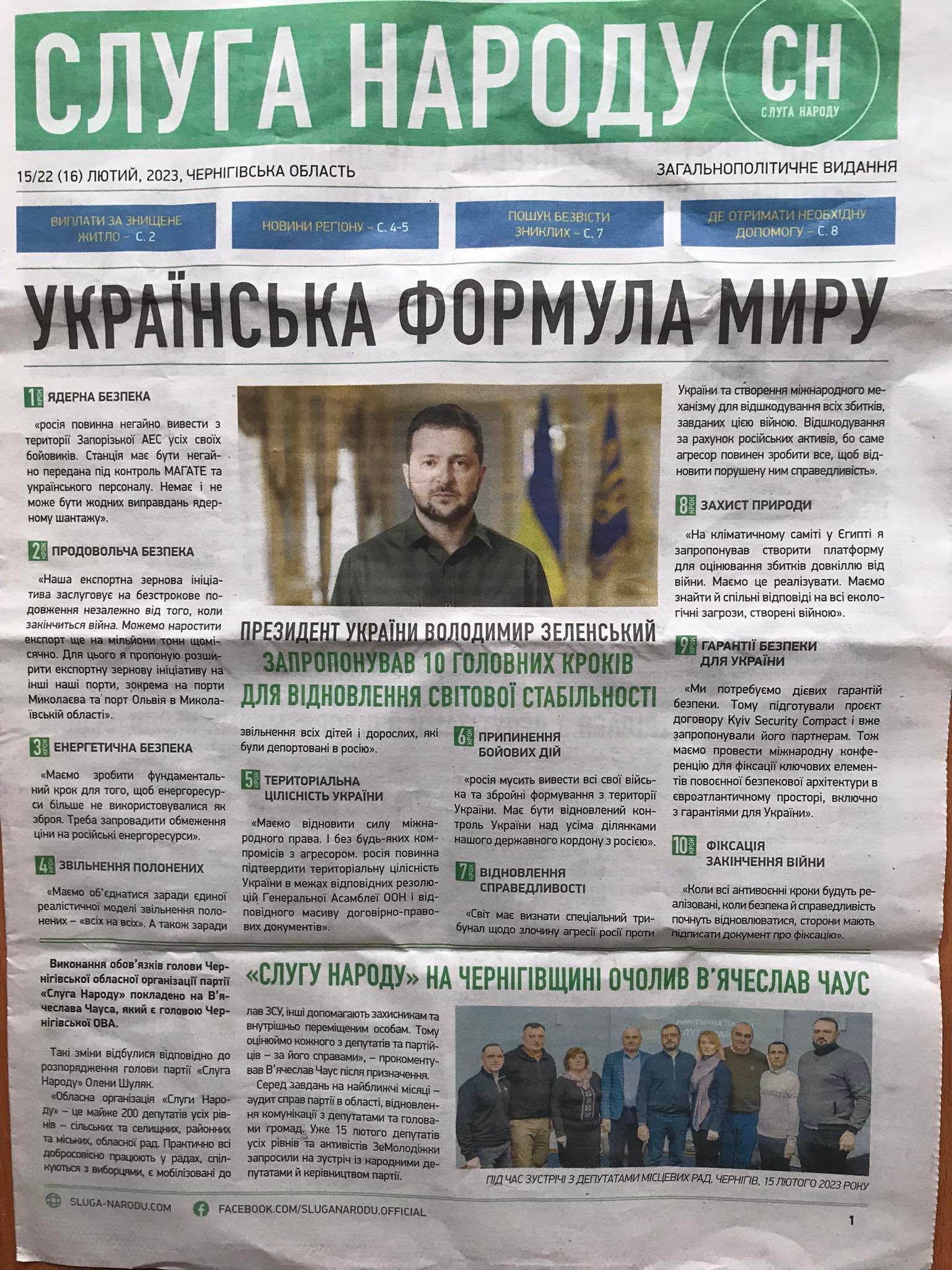 21 квітня 2023 року В’ячеслава Чауса обрали головою обласного осередку "Слуги народу" на партійному заході, який не дозволили знімати журналістам, посилаючись на те, що подія закрита. Голова ОВА також відмовився коментувати своє обрання. Наприкінці березня від політичної партії “Слуга народу” поширювали партійні газети — про це повідомив у фейсбуці Павло Пущенко, голова ГО “Чернігівський освітній центр «Ініціатива»”. Тож політичні оглядачі почали говорити про підготовку партії до виборів.