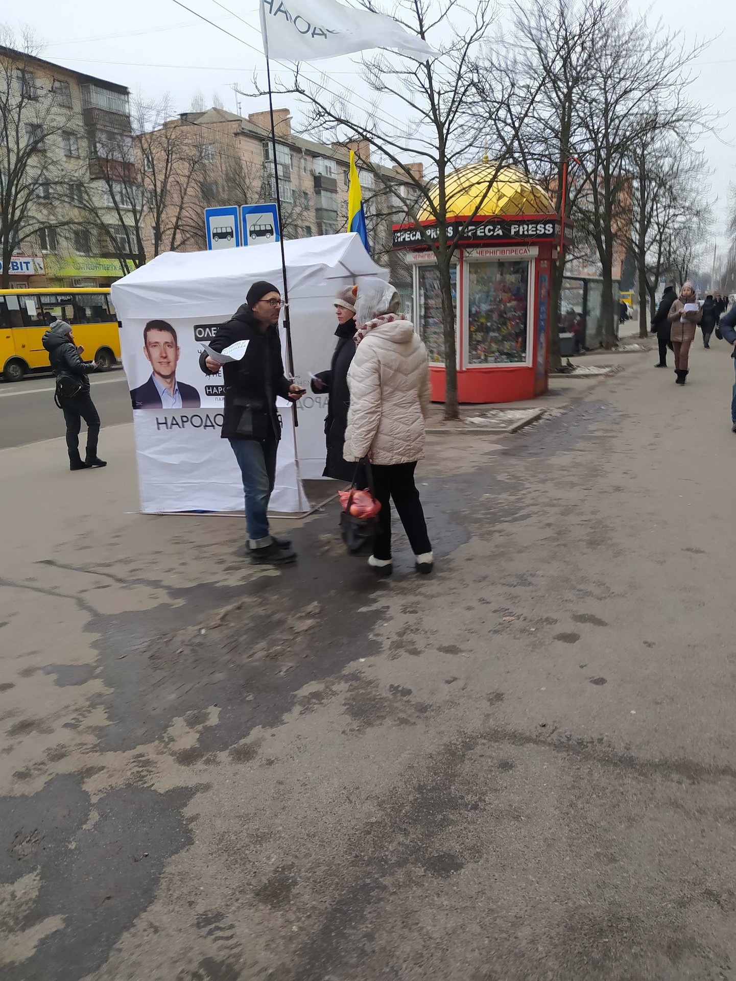 Разом з тим, у суботу та неділю 19 та 20 лютого у Чернігові активісти політичної партії «Народовладдя» поширювали також друковані агітаційні матеріали на користь кандидата від цієї політичної сили Олега Робейка. Агітаційну продукцію розповсюджували серед виборців зі встановлених наметів.