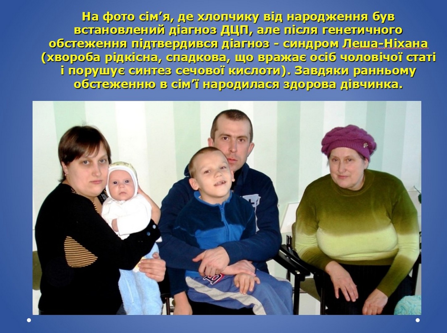 Приміром, така співпраця допомогла сім’ї, де хлопчику від народження був встановлений діагноз ДЦП, але після генетичного обстеження підтвердився інший діагноз – синдром Леша-Ніхана. Це рідкісна та спадкова хвороба, що вражає осіб чоловічої статі. Завдяки ранньому обстеженню в сім’ї народилася здорова дівчинка.