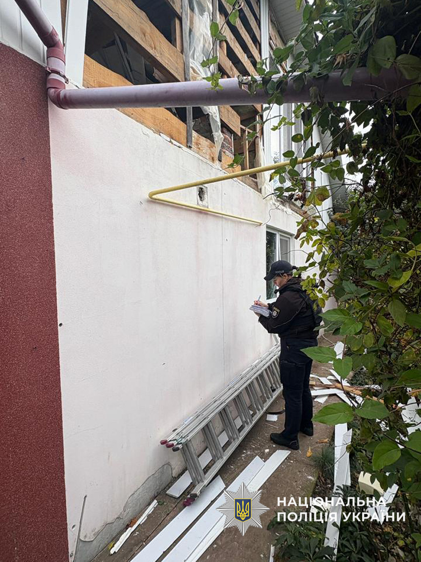 Поліцейські фіксують наслідки атаки та збирають докази чергових воєнних злочинів окупантів.