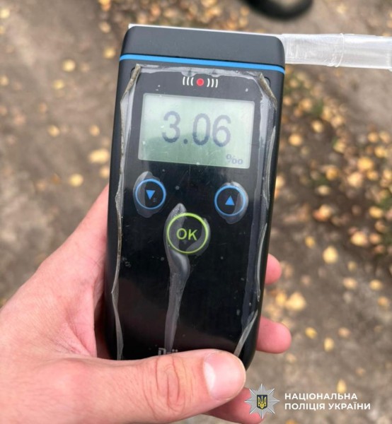 Результат показав 3,06 проміле, що перевищує допустиму норму (0,2 проміле) більш ніж у 15 разів.