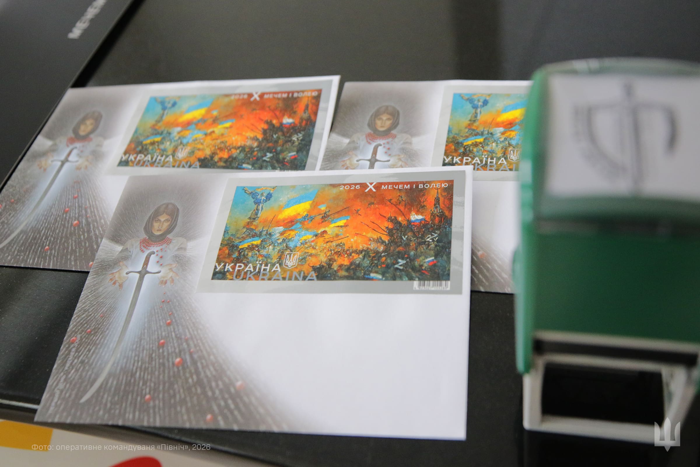 Уже традиційно історичні дати в Україні закарбовуються в поштових марках. Тож і в день початку повномасштабної війни рф проти Української держави офіцери оперативного командування "Північ" за традицією долучилися до погашення нової поштової марки від Укрпошта.