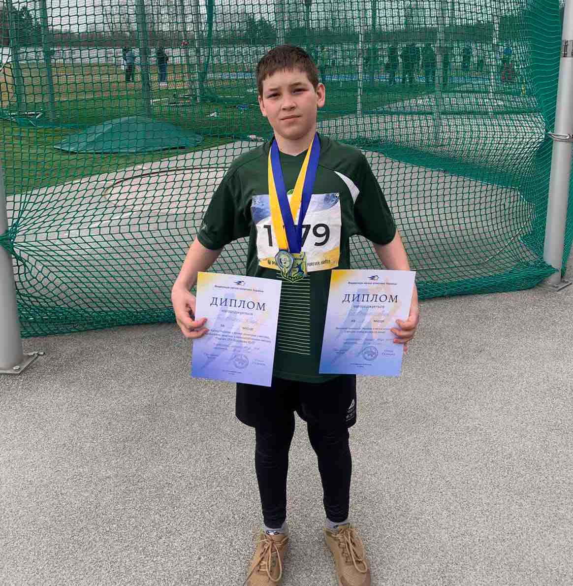 І місце - ГОЛОВЧЕНКО Єгор, метання спису 500 г, тренер Небощицький Олег;