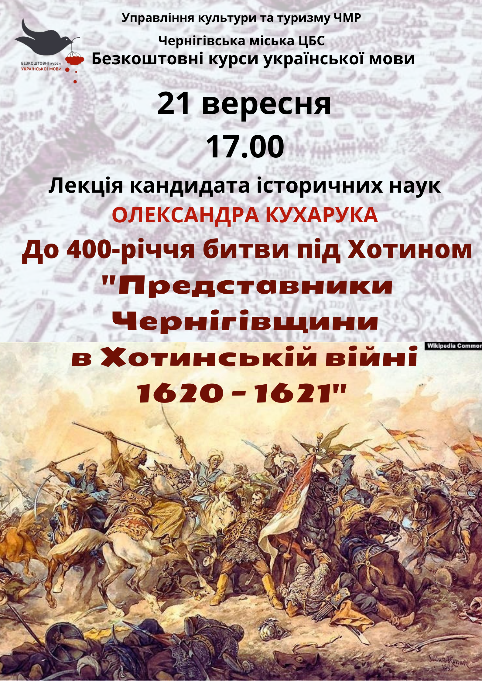 21 вересня на 17.00 - лекція О. Кухарука "Чернігівці в Хотинській війні"