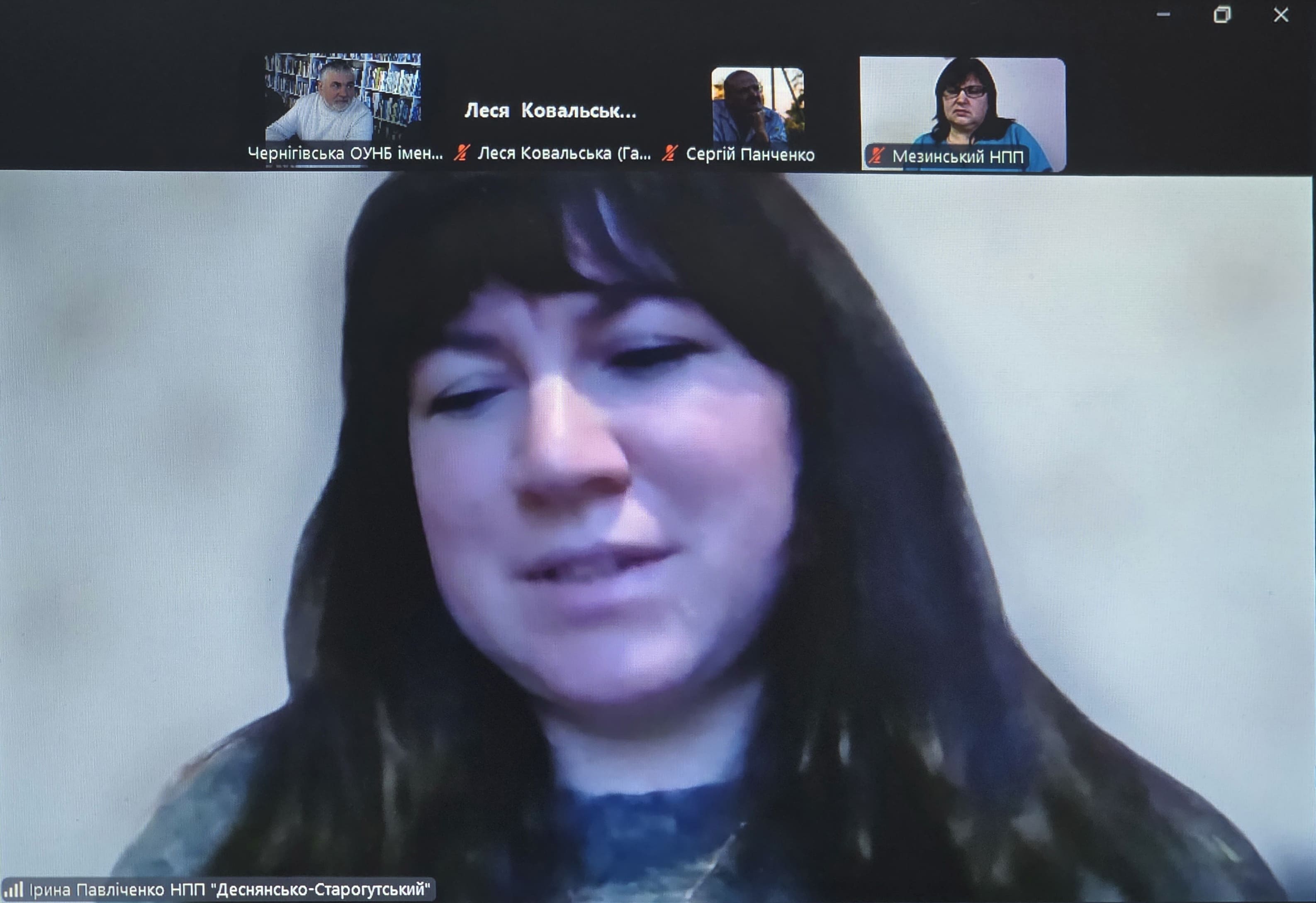 Працівниці Мезинського національного природного парку Людмила Науменко і Лариса Подоляко представили розгорнуті доповіді про розвиток екоосвіти й особливості рекреаційної діяльності в сучасних умовах.