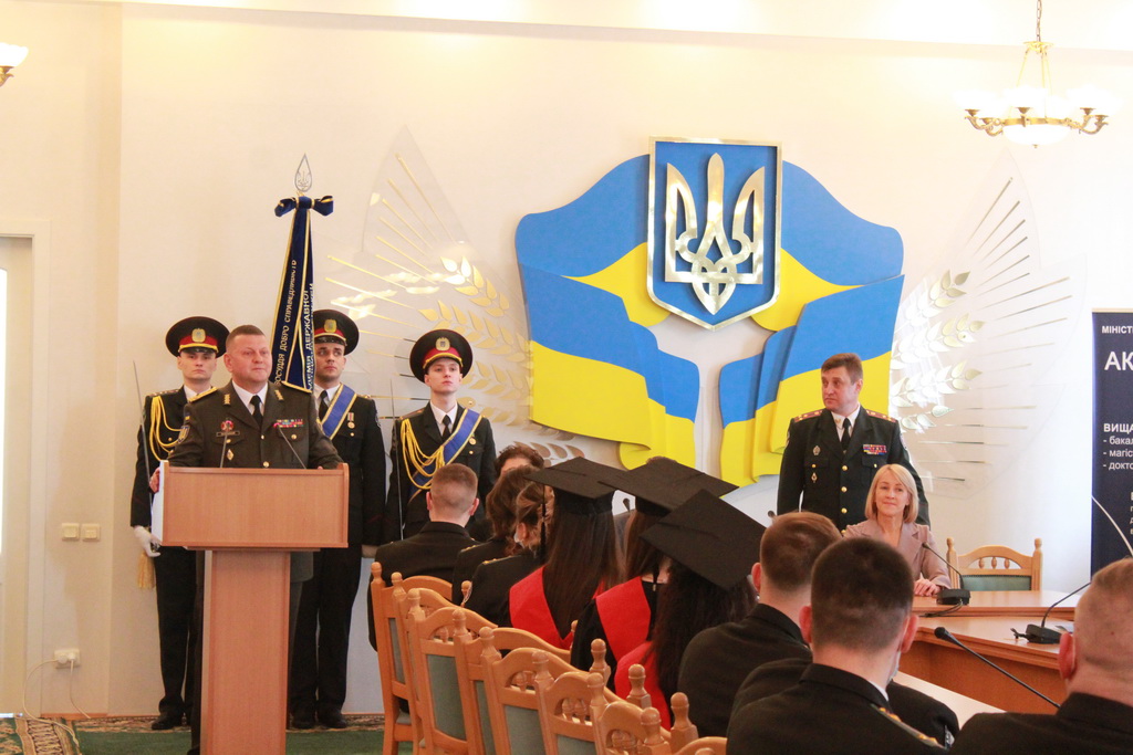 Першим до випускників звернувся ректор Академії Олексій Тогочинський: «Сьогодні перед вами постають нові життєві обрії. Немає сили могутнішої, ніж знання, а людина озброєна вмінням їх застосовувати, це вже професіонал з великої літери. Прагніть скрізь у своїй подальшій службі на благо Української держави приймати правильні, життєво важливі рішення та сповна використовувати знання і практичні вміння, здобуті в Академії. Досягнувши службових та кар’єрних успіхів, намагайтеся не розгубити людяність і пам’ятайте вашу Альма-матір».