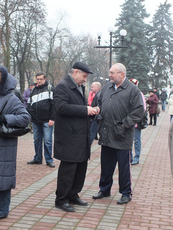 Як вже повідомлялося, організаторами заходу виступили чернігівська громадська організація "Апельсин" та чернігівський осередок Демократичного Альянсу. І хоча організації більше молодіжні, на чернігівському євромайдані спочатку було більше людей старшого та пенсійного віку.