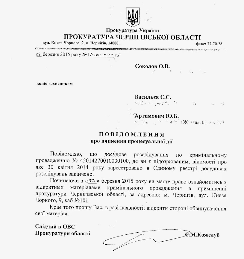 Міському голові Чернігова вручили повідомлення про завершення слідства. ДОКУМЕНТ