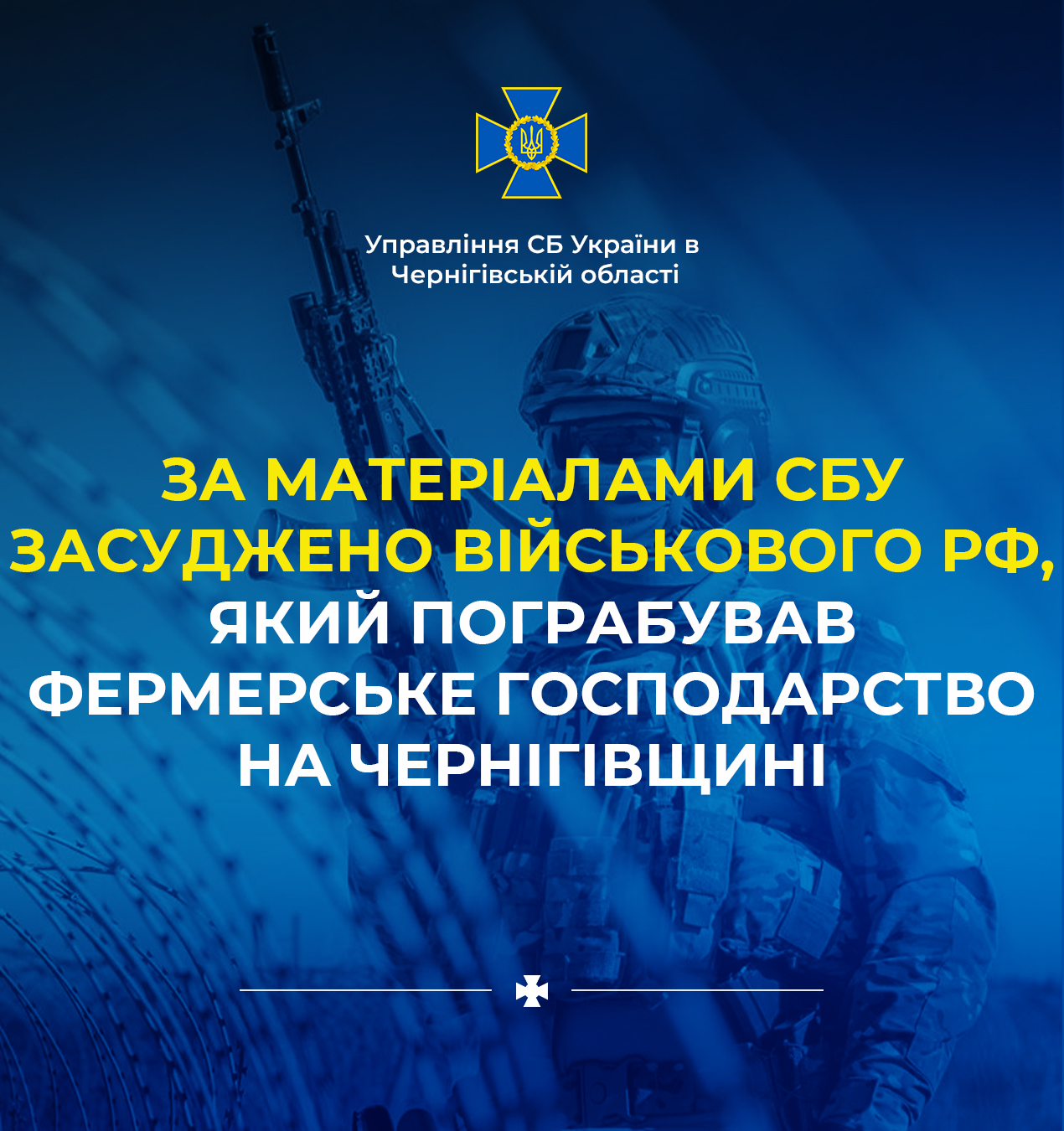 За матеріалами СБУ засуджено військового рф, який пограбував фермерське господарство на Чернігівщині