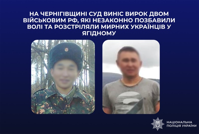 На Чернігівщині суд виніс вирок двом військовим рф, які незаконно позбавили волі та розстріляли мирних українців у Ягідному