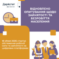 Головне управління статистики у Чернігівській області інформує, що з 19 січня 2026 року в Україні розпочинається обстеження робочої сили – вибіркове опитування населення (домогосподарств), яке проводиться на виконання Плану державних статистичних спостережень на 2026 рік і є частиною євроінтеграційних процесів України.