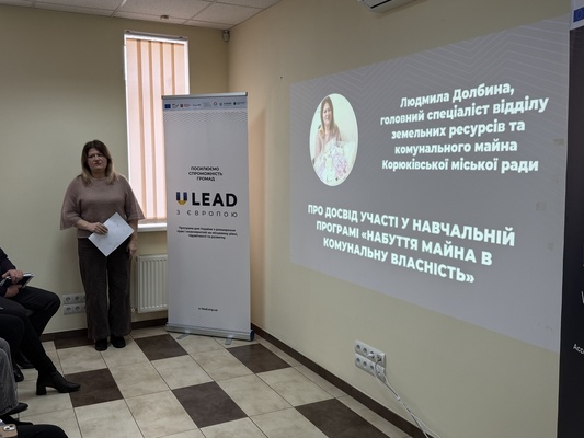 Головна спеціалістка відділу земельних ресурсів та комунального майна Корюківської міської ради Людмила Долбіна розповіла про результати участі у навчальній програмі «Набуття майна в комунальну власність»: «Практичний результат від навчання ми отримали досить швидко. Від себе щиро рекомендую керівникам громад користуватися нагодою і спрямовувати на навчальні програми спеціалістів та посадовців».