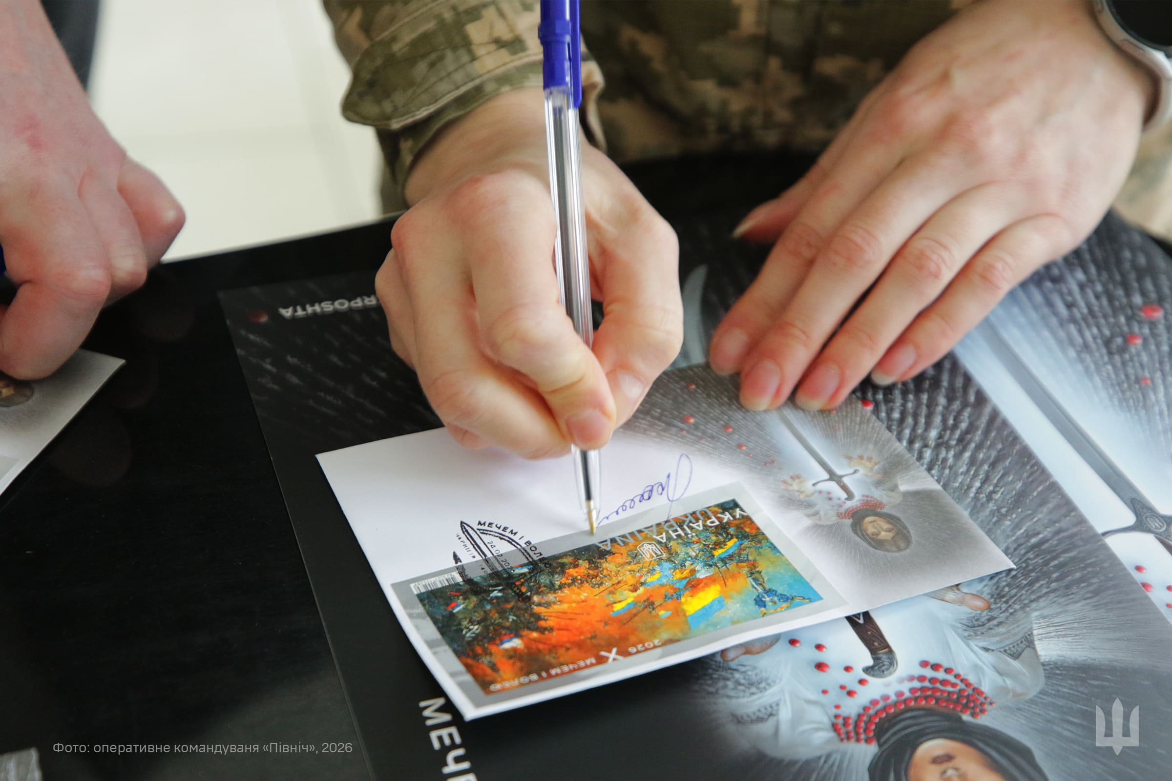 Уже традиційно історичні дати в Україні закарбовуються в поштових марках. Тож і в день початку повномасштабної війни рф проти Української держави офіцери оперативного командування "Північ" за традицією долучилися до погашення нової поштової марки від Укрпошта.